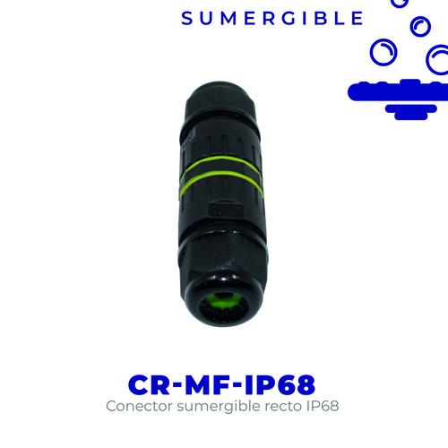El Conector Sumergible Recto IP68 CR-MF-IP68 de Aqua-TC es la solución ideal para asegurar conexiones eléctricas en entornos acuáticos. Fabricado en poliamida con un elegante acabado negro, este conector garantiza la protección necesaria para mantener la funcionalidad de sus luminarios sumergibles.