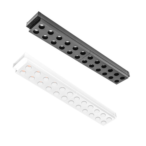 Su diseño compacto y funcional permite una fácil instalación en sistemas de riel magnético, lo que proporciona flexibilidad en la dirección del haz de luz. Con un ángulo de apertura de 30º, es perfecto para resaltar cuadros, objetos de arte, o áreas específicas de una habitación.