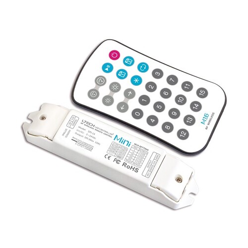 Este modelo cuenta con un control remoto que proporciona una distancia de hasta 15 metros, permitiendo un uso cómodo y versátil. Su instalación es sencilla y se adapta a tiras LED con un voltaje de entrada de 5 a 24 V DC. Además, es altamente confiable, con una corriente máxima de 10 A y una potencia que varía desde 0 hasta 240 W, lo que lo convierte en una excelente opción para cualquier proyecto de iluminación.