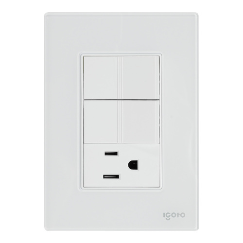 La Placa Armada Cristal de IGOTO es la solución perfecta para quienes buscan un diseño elegante y funcional en sus instalaciones eléctricas. Este modelo cuenta con 2 apagadores sencillos y 1 contacto de 1 módulo, todo en un acabado blanco y diseñado para integrarse perfectamente en cualquier entorno moderno. Fabricada en cristal de alta calidad y con un chasis de policarbonato autoextinguible, garantiza tanto estética como seguridad en su uso.